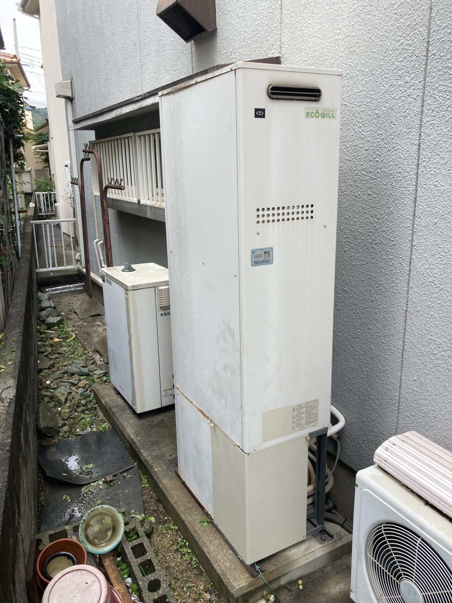 | 施工内容 | 和歌山市でガス給湯器交換ならお任せ! チカラもち和歌山店です。 今回は和歌山市木ノ本で エコウィルから ノーリツ製のGTH-C2460AW3H-1 BLへと交換致しました。 こちらのお客様がお使いでしたのは、エコウィルです。 エコウィルとは、都市ガスで発電をおこない、その際に発生する排熱を給湯に利用する効率の良い機器です。 しかし、エコウィルの製造、販売がすでに終了していますので、 今お使いのエコウィルが故障した場合や買い替えの際には、エコウィル以外のものへ変更することとなります。 エコウィルから、ガス給湯器にされるお客様、エコキュートにされるお客様など様々です。 当社はいずれの場合にも対応が可能ですし、幅広い対応をおこなっておりますので、 ご相談くださいませ。 こちらのお客様は、ガス給湯器をお選びくださいました。 ガス給湯器を使用するための、防水コンセントの新設が必要ですが、 こちらも電気工事をおこなう職人がおりますので、お任せください! こちらのお客様の場合には、ガス式の暖房をお使いになられるので、 暖房付きふろ給湯器を設置しました。 給湯器で温めたお湯を、ポンプを使って循環させることで、暖房をおこないます。 エコウィルからガス給湯器になり、スペースもかなり広くなりました。 不要となったエコウィルやその他の部材については、当社で持ち帰りし、 お客様のお手間はかかりませんのでご安心ください。 和歌山市木ノ本で給湯器の交換なら チカラもちまでお問い合わせください。 📞0120-377-910 ********************************* |